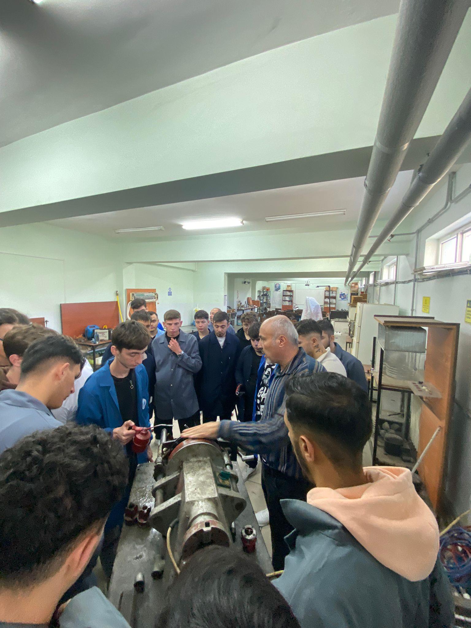Temel Tesisat İşlemleri dersi kapsamında, Öğr. Gör. Dr. Bülent Gedik nezaretinde öğrenciler borularda ölçü alma, kesme, pafta ile diş açma ve montaj uygulamaları gerçekleştirmektedir. Bu çalışmalar, öğrencilerin tesisat sistemlerinin temel ilkelerini uygulamalı olarak öğrenmelerini, doğru ölçülendirme ve bağlantı tekniklerini geliştirmelerini amaçlamaktadır. Uygulamalar sırasında iş sağlığı ve güvenliği kurallarına uygun çalışma alışkanlıklarının kazandırılması da öncelikli hedefler arasındadır. Böylece öğrenciler, standartlara uygun, güvenli ve verimli tesisat montajı becerileri edinmektedir.