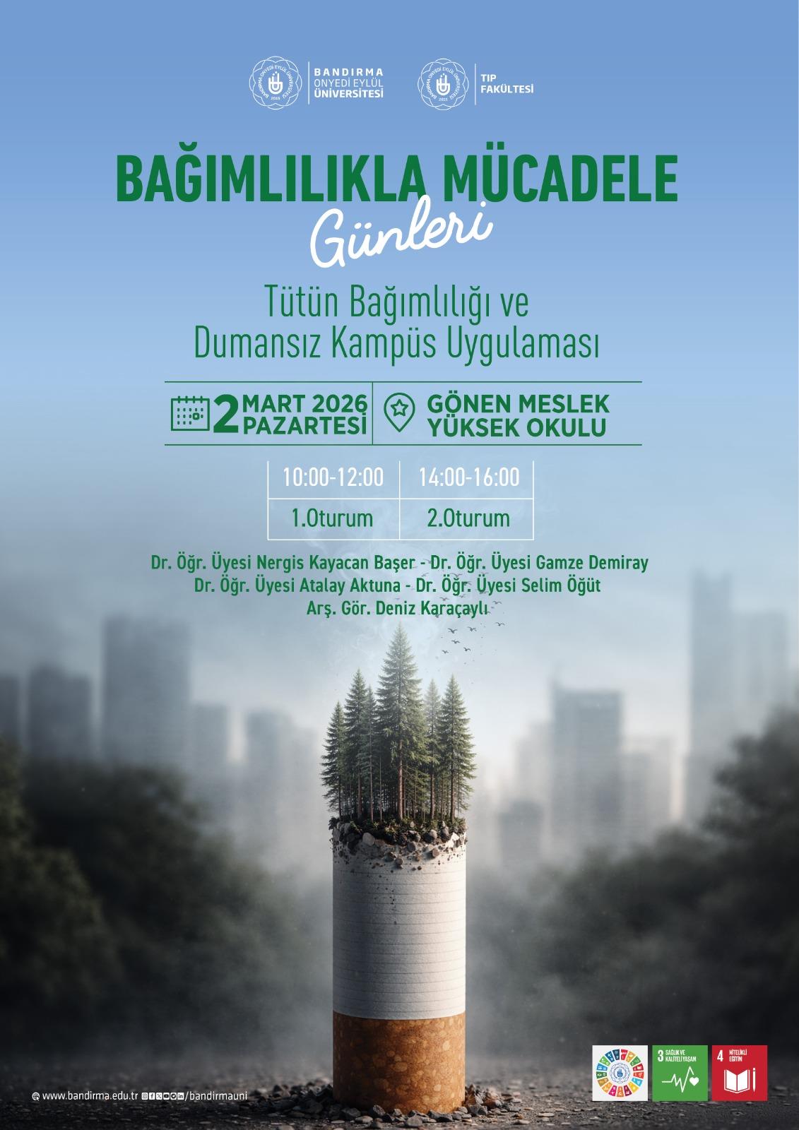 Tütün bağımlılığıyla mücadele konusunda farkındalık oluşturmayı, sağlıklı yaşam bilincini güçlendirmeyi ve dumansız kampüs uygulamalarına ilişkin bilgi paylaşımını amaçlayan etkinlikte konu farklı yönleriyle ele alınacak.