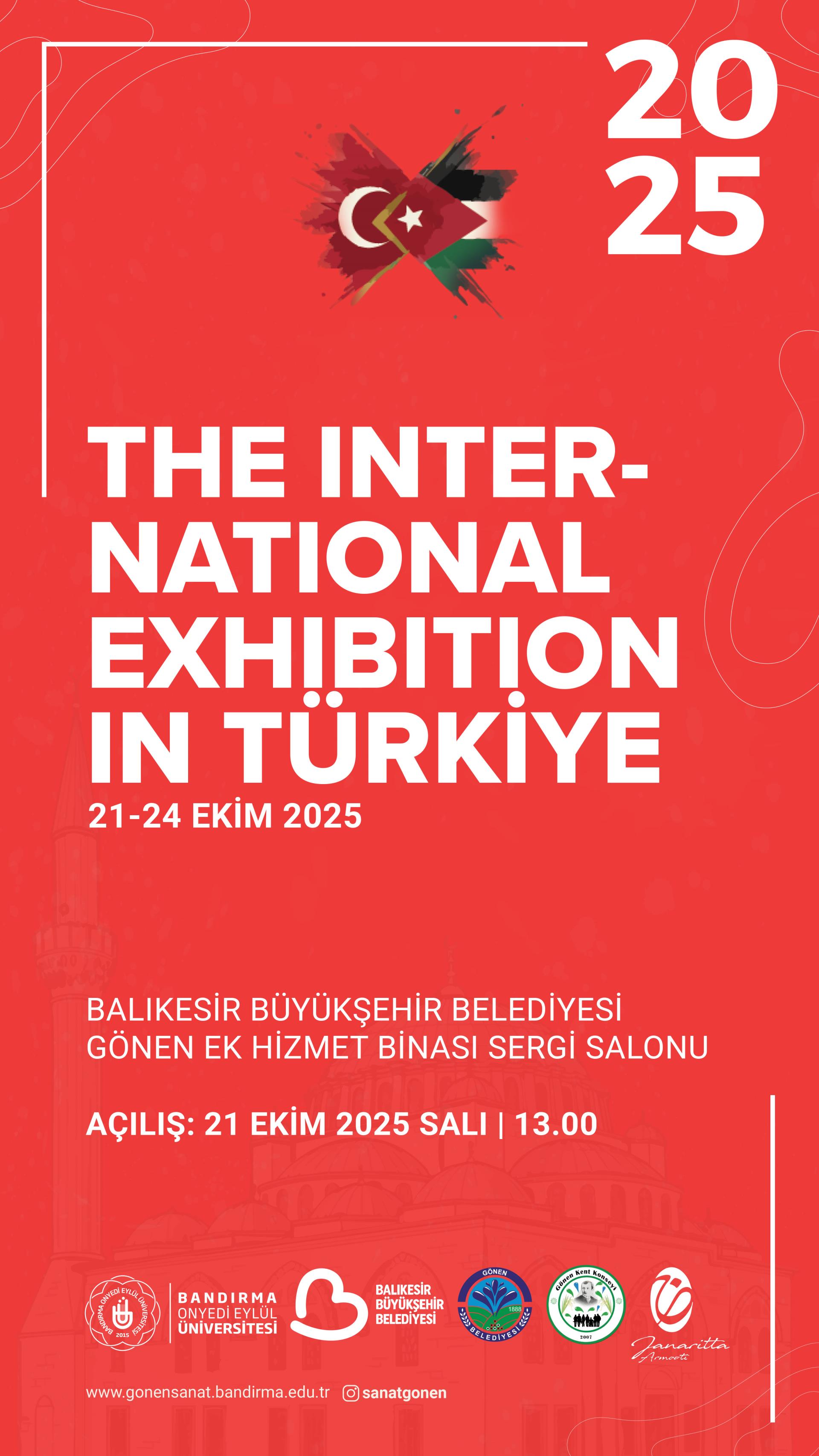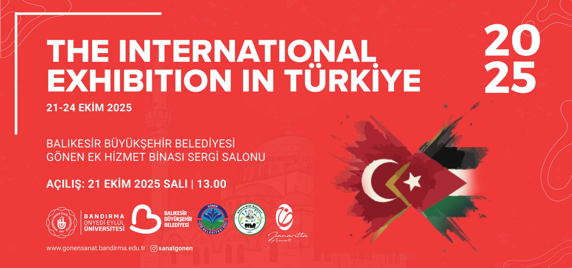 Bandırma Onyedi Eylül Üniversitesi Gönen Meslek Yüksekokulu Gönen Sanat Komisyonu tarafından, Balıkesir Büyükşehir Belediyesi, Gönen Belediyesi ve Gönen Kent Konseyi’nin destekleriyle; Ürdün’de bulunan Janaritta Armooti Gallery iş birliğiyle “The International Exhibition in Türkiye” adlı uluslararası sergi düzenlenecektir.