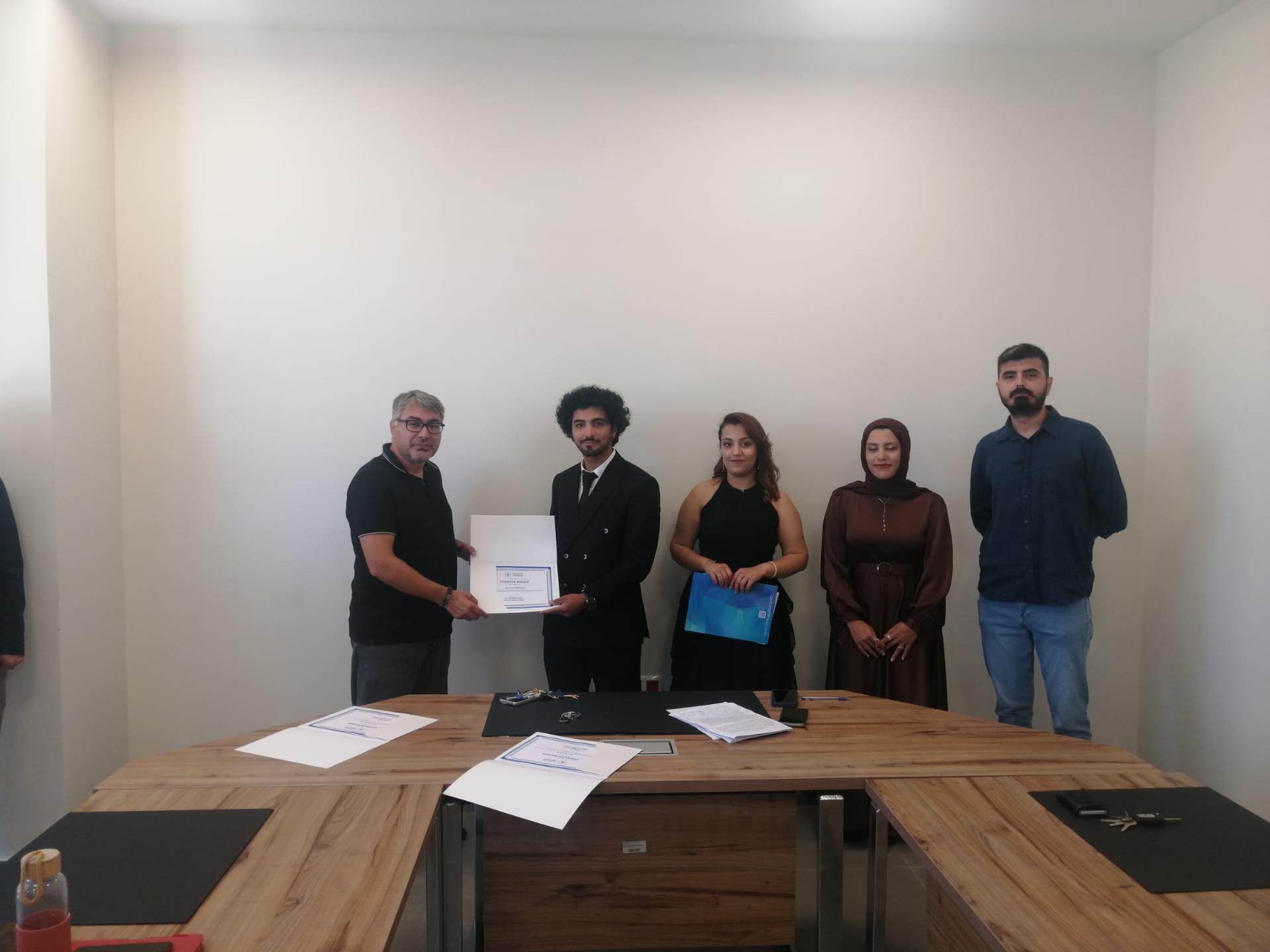 Toplantının ardından Fakültemiz medya merkezimize destek sağlayan ve mezun olacak öğrencilerimizden Elif KIN, Helin KARAYAL,Esra ÇETİN ve Eren PAMUKOĞLU’na teşekkür belgeleri takdim edildi.