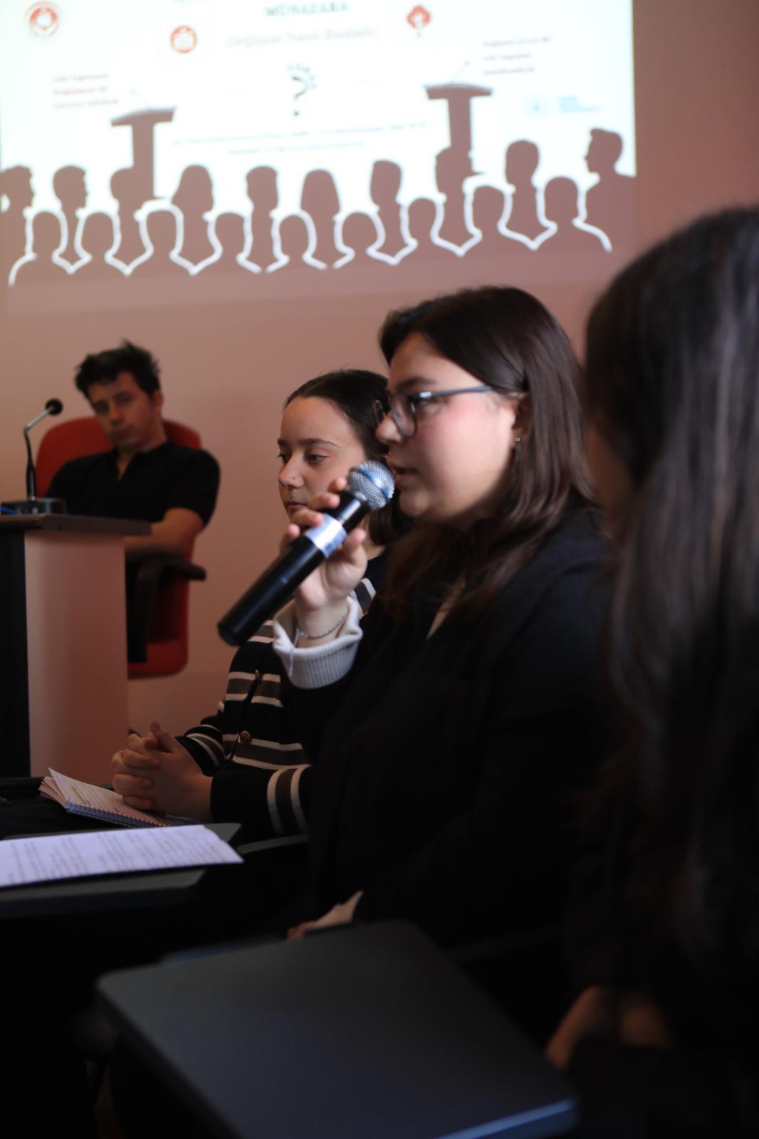 Meslek Yüksekokulu Tanıtım ve Organizasyon Komisyonumuzun koordinasyonunda, İşletme Yönetimi Programı tarafından münazara etkinliği gerçekleştirildi. 2025 yılının ülkemizde aile yılı olarak ilan edilmesi nedeniyle “Değişim Nasıl Başladı: Aile Yapısının Değişmesi Mi Çevreyi Etkiledi Yoksa Değişen Çevre Mi Aile Yapısını Şekillendirdi?” sorunsalı üzerine gerçekleşen ve moderatörlüğünü İşletme Yönetimi programı akademisyenlerimizden Dr. Öğr. Üyesi Hatice Batmantaş’ın üstlendiği münazarada; İşletme Yönetimi Programı 1. sınıf öğrencilerimizden İdil Su Sağır’ın başkanlığında, Zümral Bilgiç ve Ceylin Akın’dan oluşan tez grubu aile yapısının çevreyi etkilediğini savunurken Asel Ateş’in başkanlığında, Cem Çevik ve Fatime İrem Kaymakcı’dan oluşan antitez grubu çevredeki değişimin aile yapısını etkilediğini savundu.