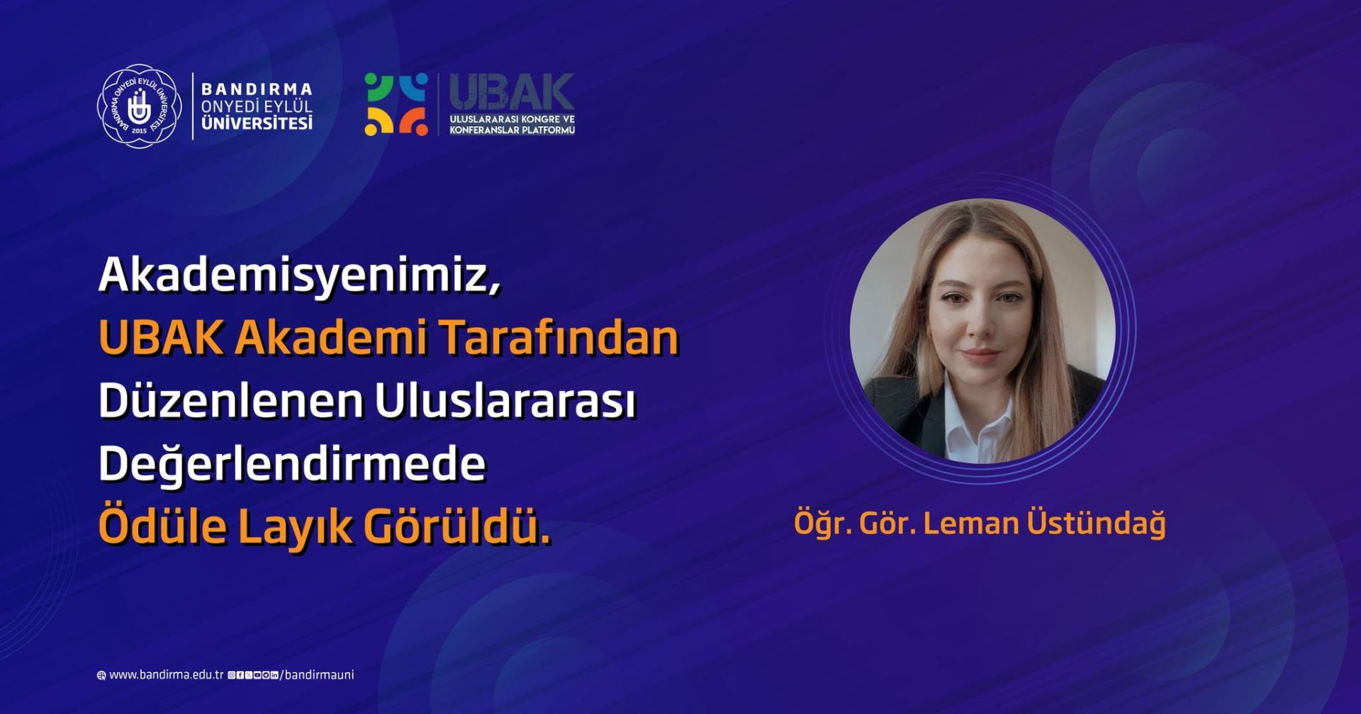 UBAK 7. Bilim Ödülü Öğr. Gör. Leman Üstündağ’ın