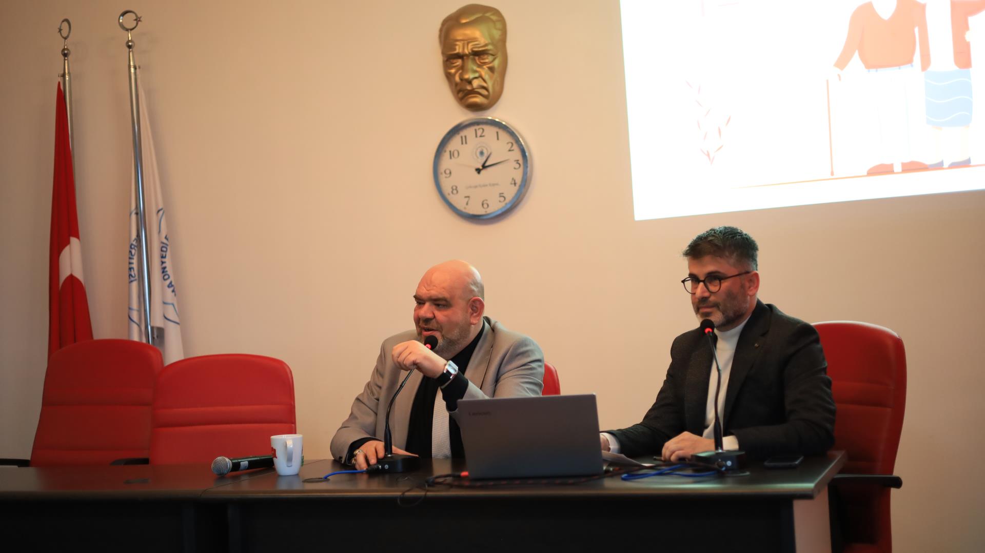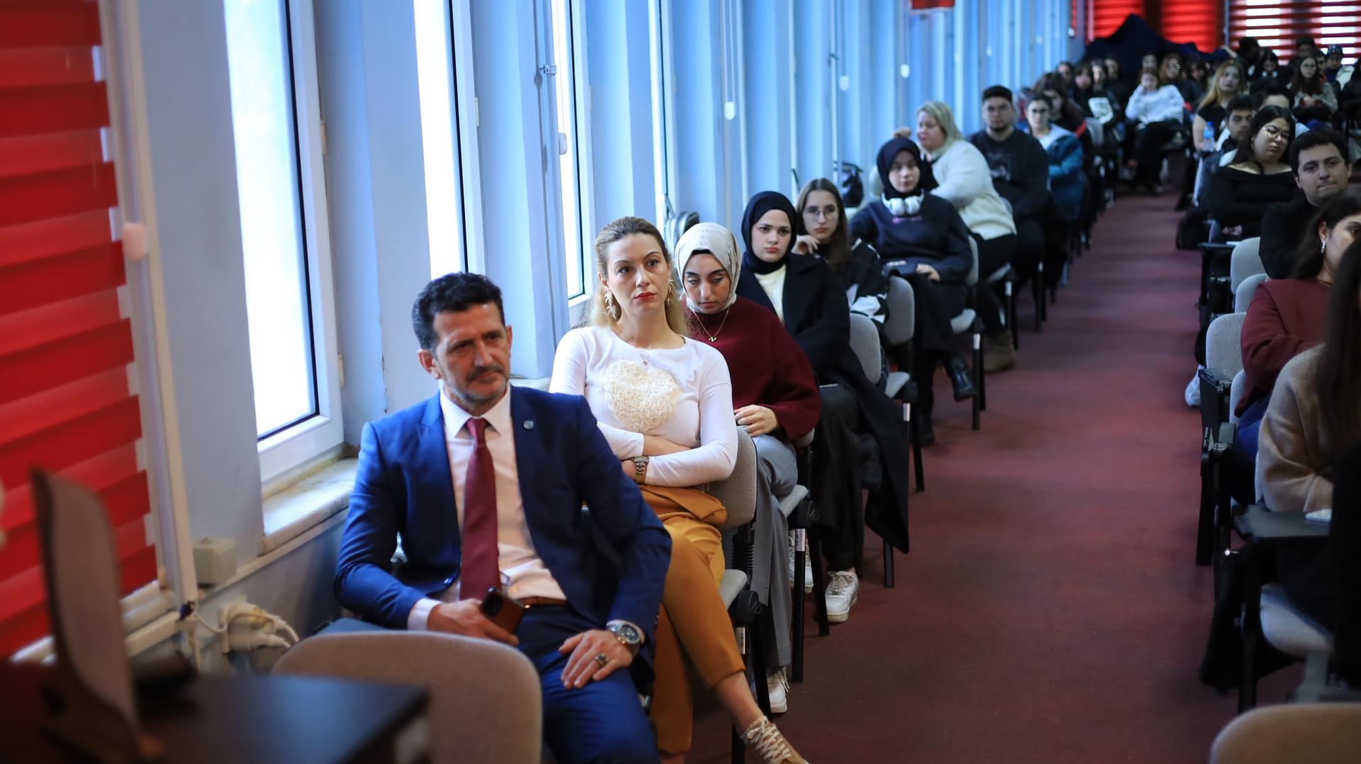 Söyleşinin moderatörlüğünü Grafik Tasarımı Pr. Dr. Öğr. Üyesi Yasin Avcı üstlenerek, stajın öğrencilerin mesleki gelişimindeki belirleyici rolüne ve SGK süreçlerinin doğru yürütülmesinin önemine vurgu yapan değerlendirmesini ifade ettikten sonra sözü Ali Duman’a bıraktı. Ali Duman sunumunda; zorunlu staj sigorta işlemleri, belirli süreli sözleşmeler, kısa vadeli SGK harçları, GSS yükümlülükleri, Fazla mesai uygulamaları, resmî tatillerde çalışma esasları, Staj devamsızlık oranları, iş kazası süreçleri, iş güvenliği eğitimleri, işveren desteği, tazminat ve emeklilik gibi konuları kapsamlı biçimde ele aldı.