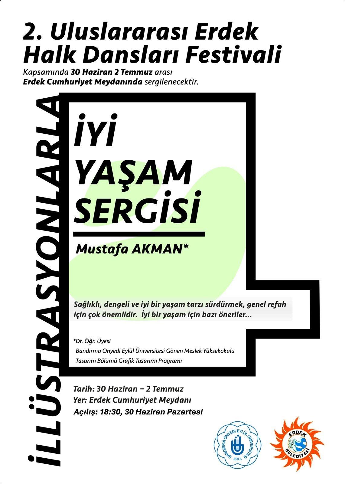 Erdek, 30 Haziran 2025, 2. Uluslararası Erdek Halk Dansları Festivali kapsamında Erdek Cumhuriyet Meydanı’nda düzenlenen “İyi Yaşam Sergisi”, ziyaretçilerle buluştu. Dr. Öğr. Üyesi Mustafa Akman’ın illüstratif çalışmalarıyla hazırlanan serginin açılışı 30 Haziran 2025 tarihinde saat 18:30’da, Erdek Belediye Başkanı Burhan Karışık ve festivale katılan yerli-yabancı halkın katılımıyla gerçekleştirildi.