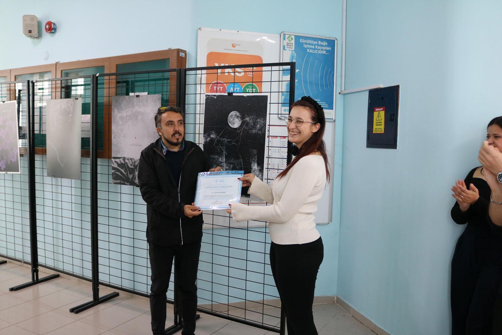 Serginin ikinci açılışı ise ertesi gün, 19 Kasım 2025 tarihinde saat 13.00’te, Bandırma Onyedi Eylül Üniversitesi Gençlik Merkezinde yapıldı. Açılış Gençlik ve Spor Bakanlığı Genç Ofis Müdürü, Gençlik Lideri ve çalışanları, akademik personel, öğrenciler ve misafirler ile gerçekleştirildi. Açılışın ardından, Gönen MYO Grafik Tasarımı Programı öğrencilerinin de katılımıyla sanatçı tarafından “Sanat Terapisinin Gücü” başlıklı bir sunum gerçekleştirildi. Sunumda sanatın iyileştirici etkisi, yaratıcı süreçlerin psikolojik iyi oluş üzerindeki rolü ve sanat terapisi örnekleri ele alındı. Etkinliklerin devamında, Polonya’da gerçekleştirilen bir kültür–sanat etkinliğine katılan öğrencimiz Ceren, deneyimlerini paylaşarak öğrencilere uluslararası sanat ortamı hakkında ilham verici bilgiler sundu.