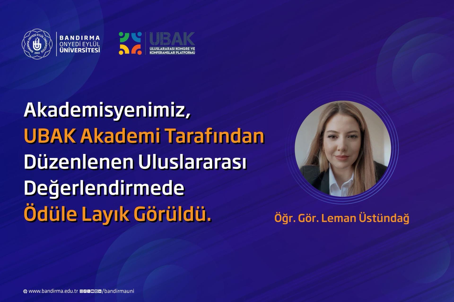 UBAK 7. Bilim Ödülü Öğr. Gör. Leman Üstündağ’ın