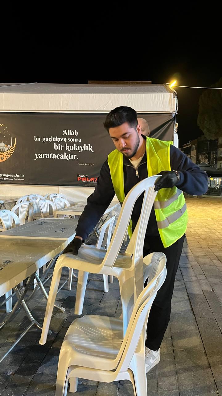 Son hafta faaliyetleri kapsamında öğrenciler, Gönen Belediyesi tarafından düzenlenen iftar organizasyonlarında görev almayı sürdürmüş; yemek dağıtımı, organizasyon düzeni ve temizlik süreçlerinde etkin rol üstlenmiştir. Süreç boyunca edinilen deneyimlerin, öğrencilerin görev paylaşımı, ekip koordinasyonu ve sahada çözüm üretme becerilerini geliştirdiği gözlemlenmiştir.