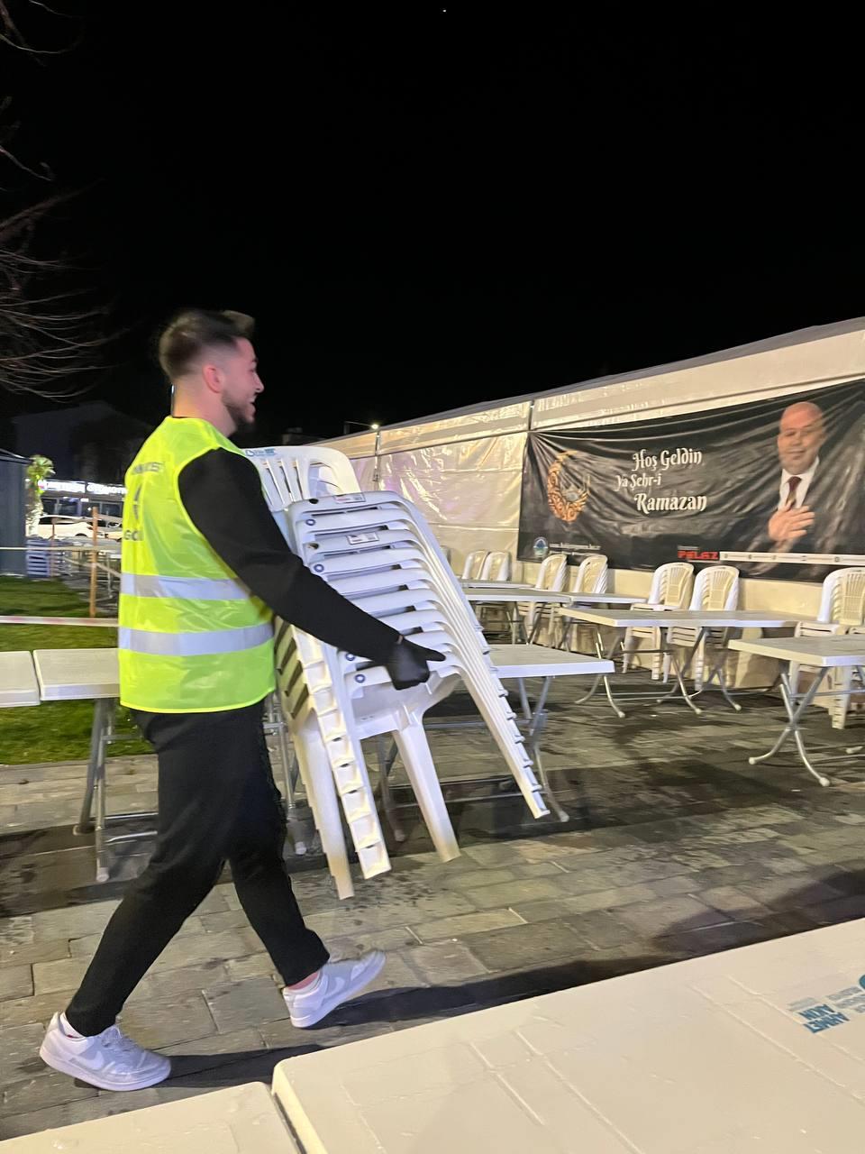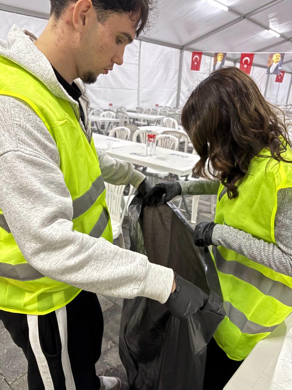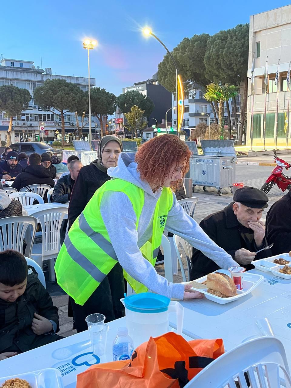 İkinci hafta boyunca öğrenciler, Gönen Belediyesi tarafından düzenlenen iftar organizasyonunda aktif görev almaya devam etmiş; yemek dağıtımı, masa düzeni ve temizlik süreçlerinin yanı sıra organizasyonun akışına katkı sağlayan destekleyici roller üstlenmiştir. Sürecin ilerlemesiyle birlikte görev paylaşımının daha sistematik bir yapıya kavuştuğu, öğrencilerin ekip koordinasyonu ve sorumluluk bilinci açısından daha etkin bir performans sergilediği gözlemlenmiştir.