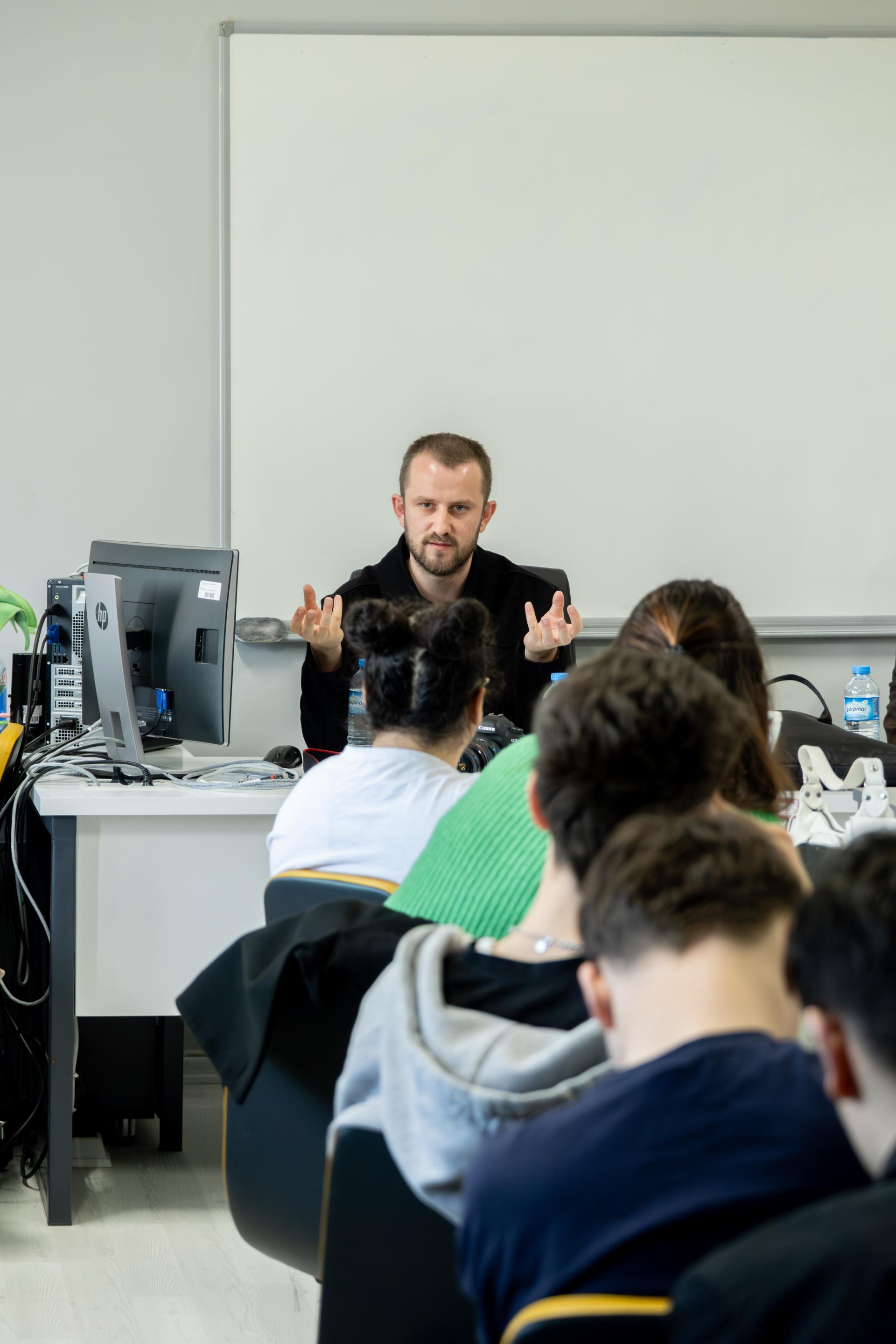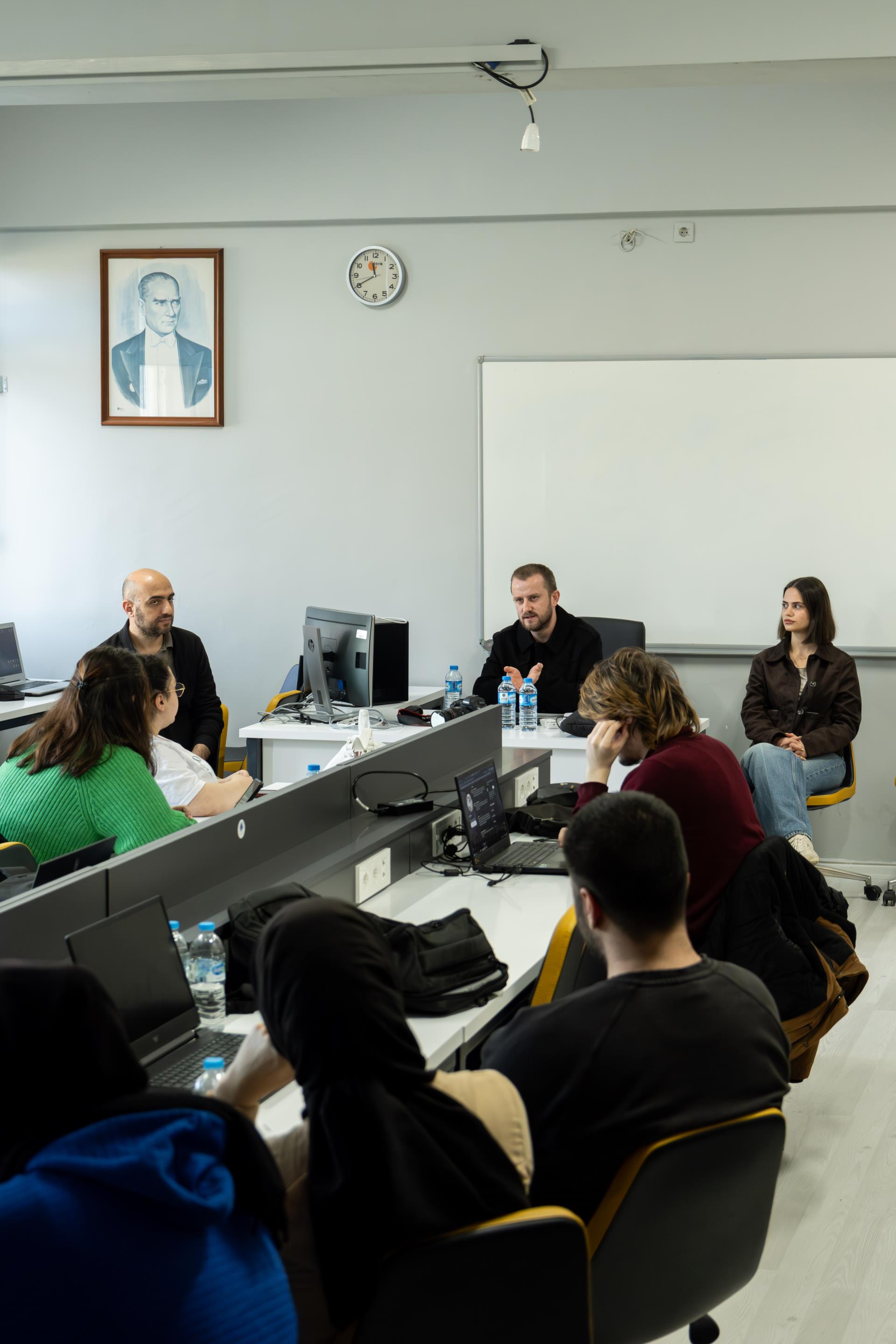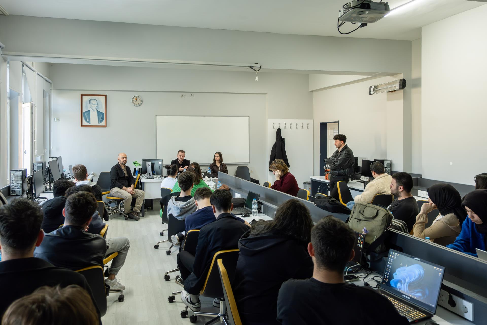 Legacy Media temsilcisi Hakan KALIN’ın sektördeki birikimi, katıldığı projelerin kapsamı ve çeşitliliğiyle de dikkat çekti. Birçok film ve büyük ölçekli prodüksiyonda aktif olarak görev alan Kalın, bu projelerde edindiği deneyimlerin kariyerine nasıl yön verdiğini öğrencilerle paylaştı. Sektörün farklı alanlarında çalışarak geniş bir uzmanlık kazandığını vurgulayan Kalın, elde ettiği başarıların disiplinli çalışma, sürekli öğrenme ve ekip uyumundan geçtiğini ifade etti. Gerçek projeler üzerinden aktardığı örneklerle, öğrencilerin mezuniyet sonrası karşılaşabilecekleri süreçlere ışık tutan Kalın, çalışma hayatına dair kritik ipuçları ve yönlendirici tavsiyelerde bulunarak etkinliğe önemli bir değer kattı.